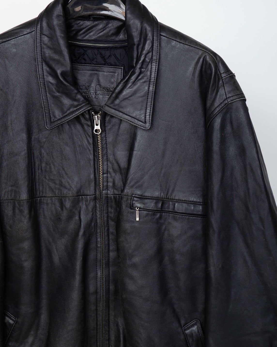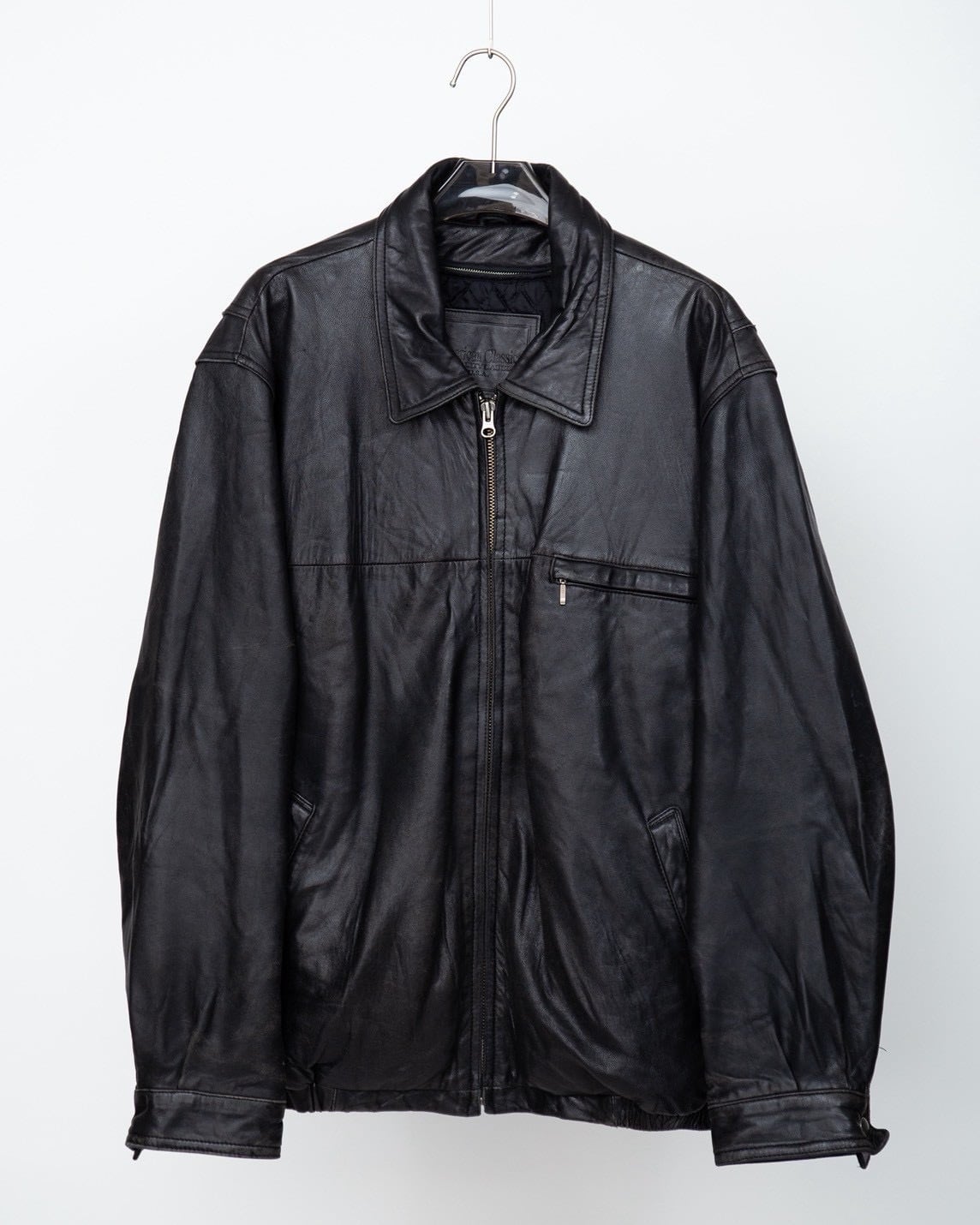 wide silhouette leather zip jacket quilting liner